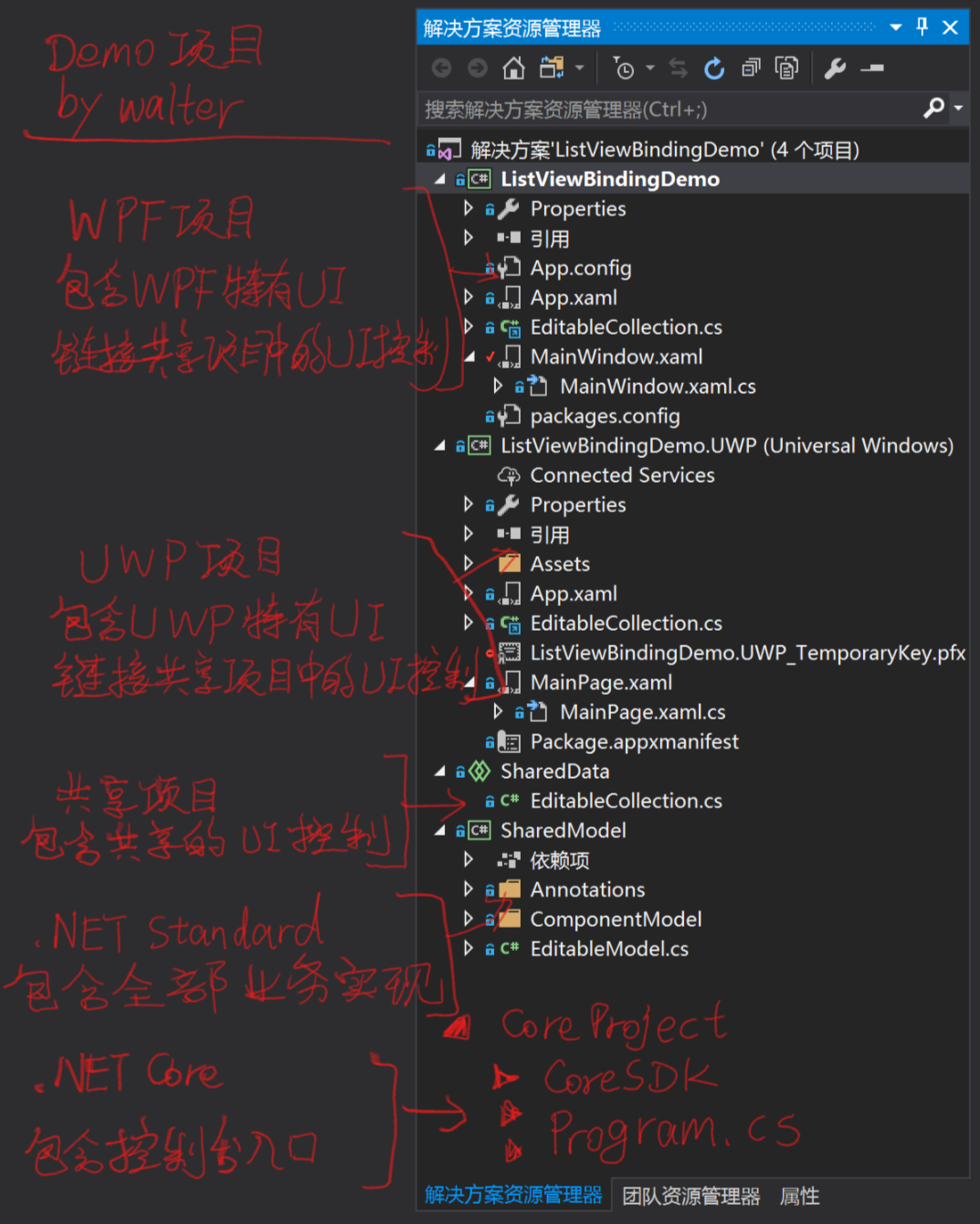 - UWP 和 WPF 项目仅包含 UI(XAML)和必要的不一致的 UI 控制逻辑,通过链接的方式将共享项目中的代码引入如何链接?。